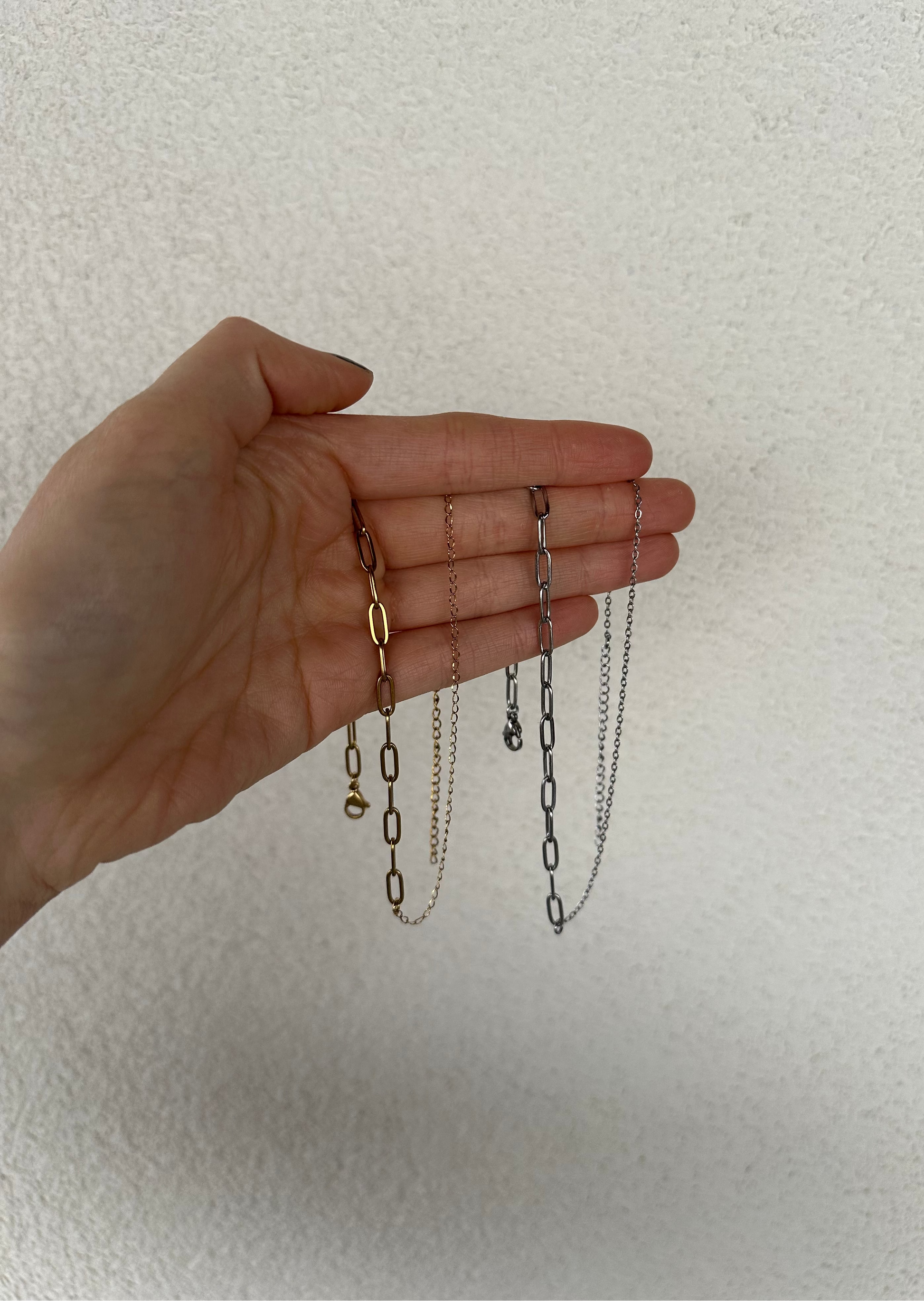 Kaikki korunosat, mukaanlukien ketjut, välirenkaat ja lukko ovat ruostumatonta terästä tai 18 karaatin kullattua ruostumatonta terästä, joka on tehty kestämään.