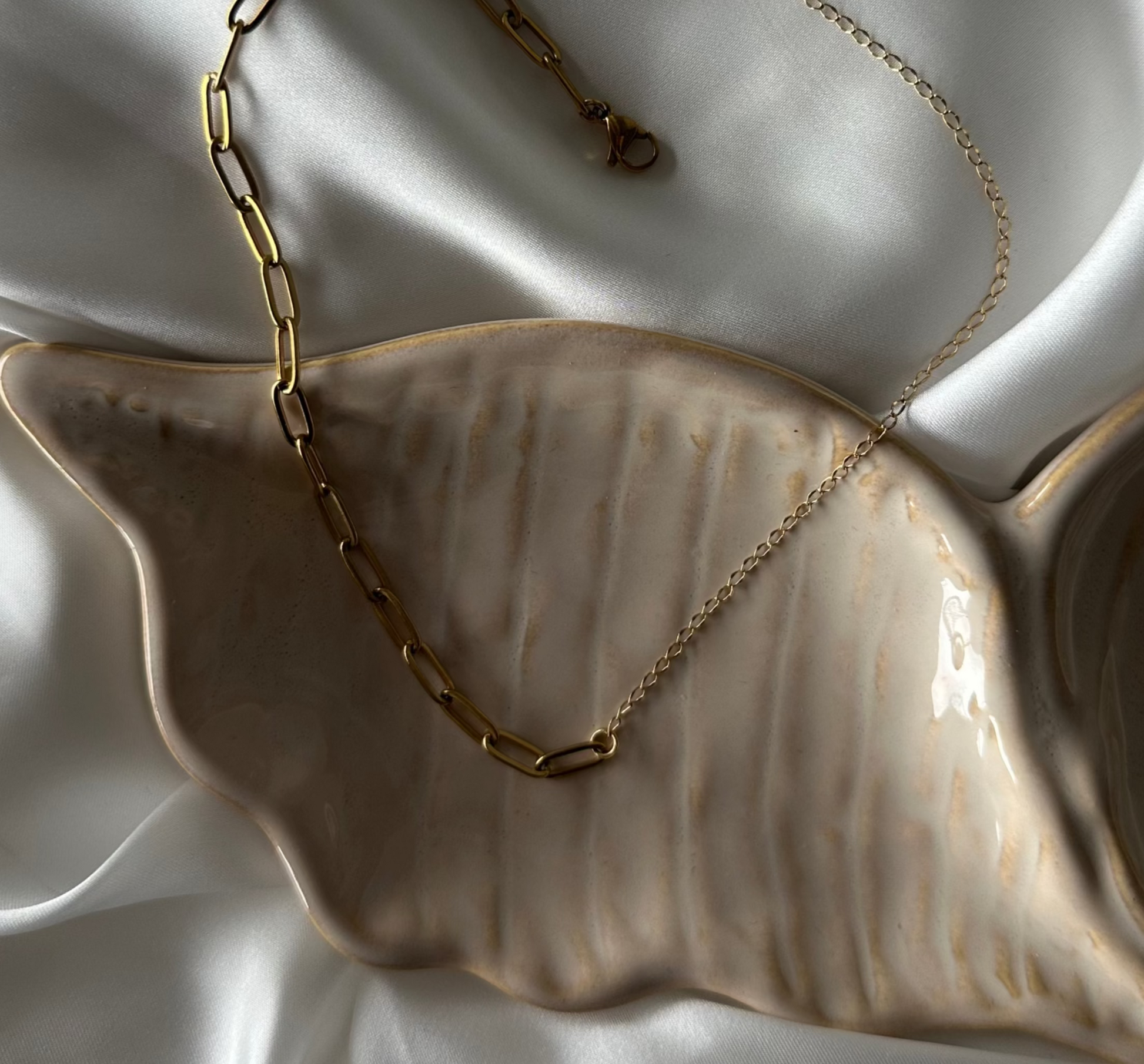 Eden kaulakoru on siro ja ajaton koru, joka muodostuu kahdesta suuruudeltaan eri kokoisista 18 karaatin kullatuista ruostumattomasta teräksestä valmistetuista ketjuista. Korusta löytyy myös teräksen värinen versio.