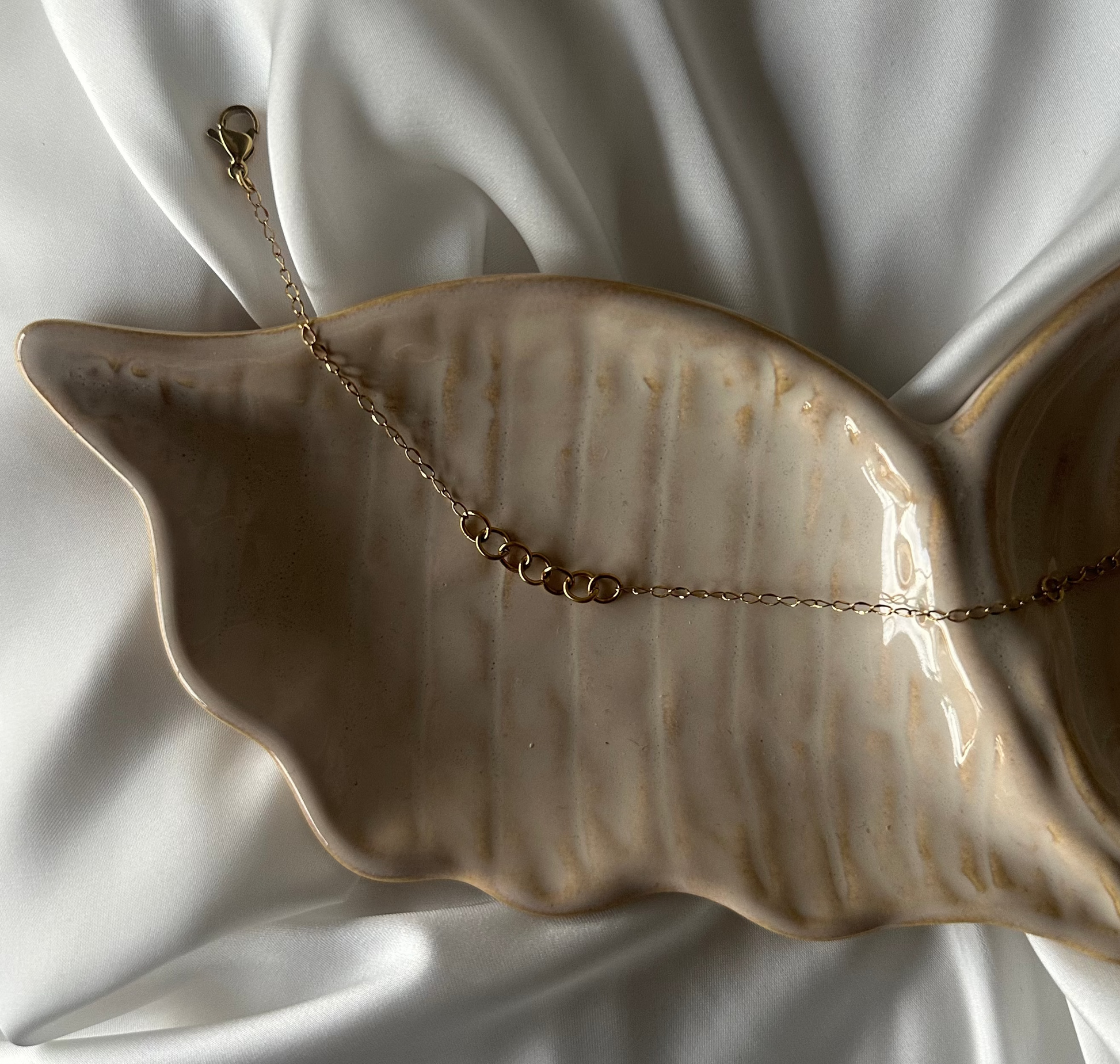 Kaikki korunosat, mukaanlukien ketju, välirenkaat ja lukko ovat 18 karaatin kullattua ruostumatonta terästä, joka on tehty kestämään.